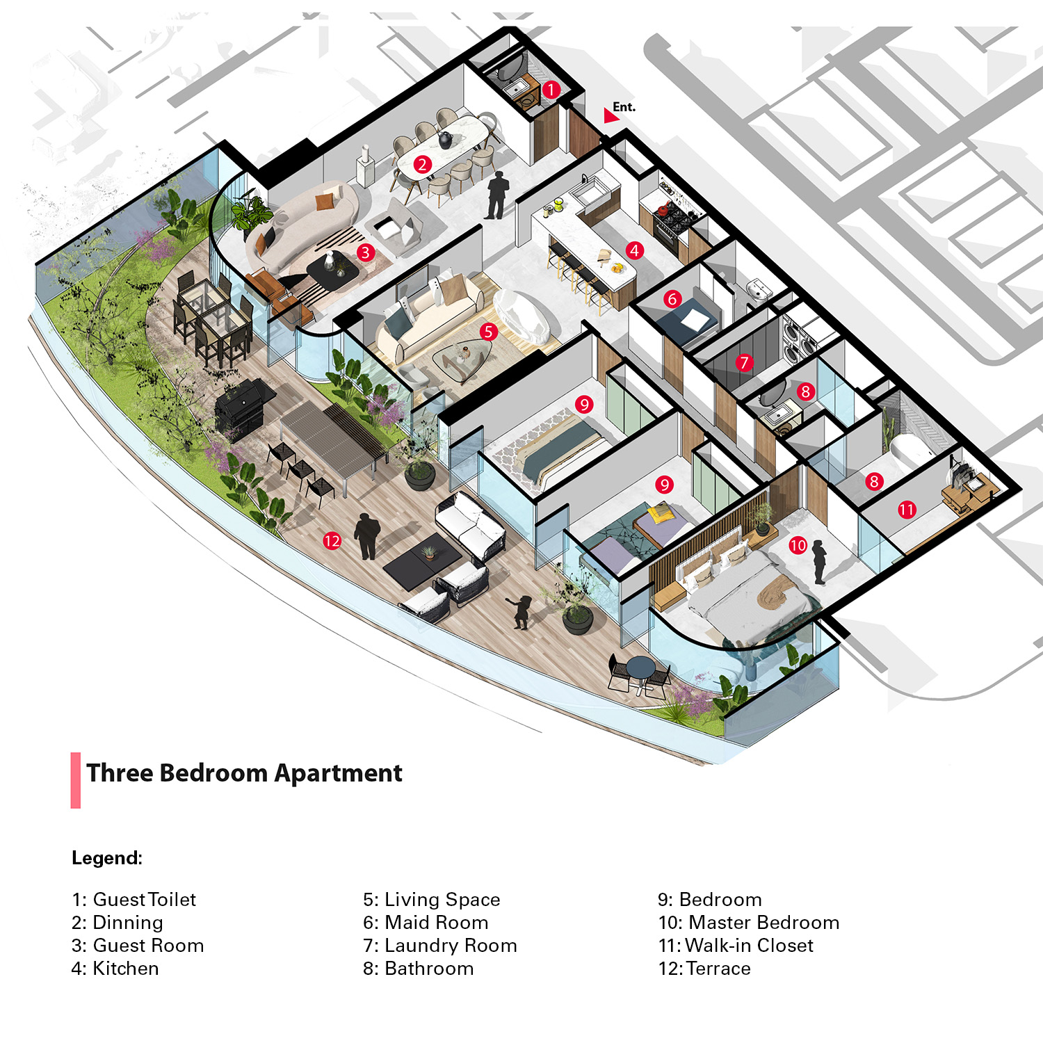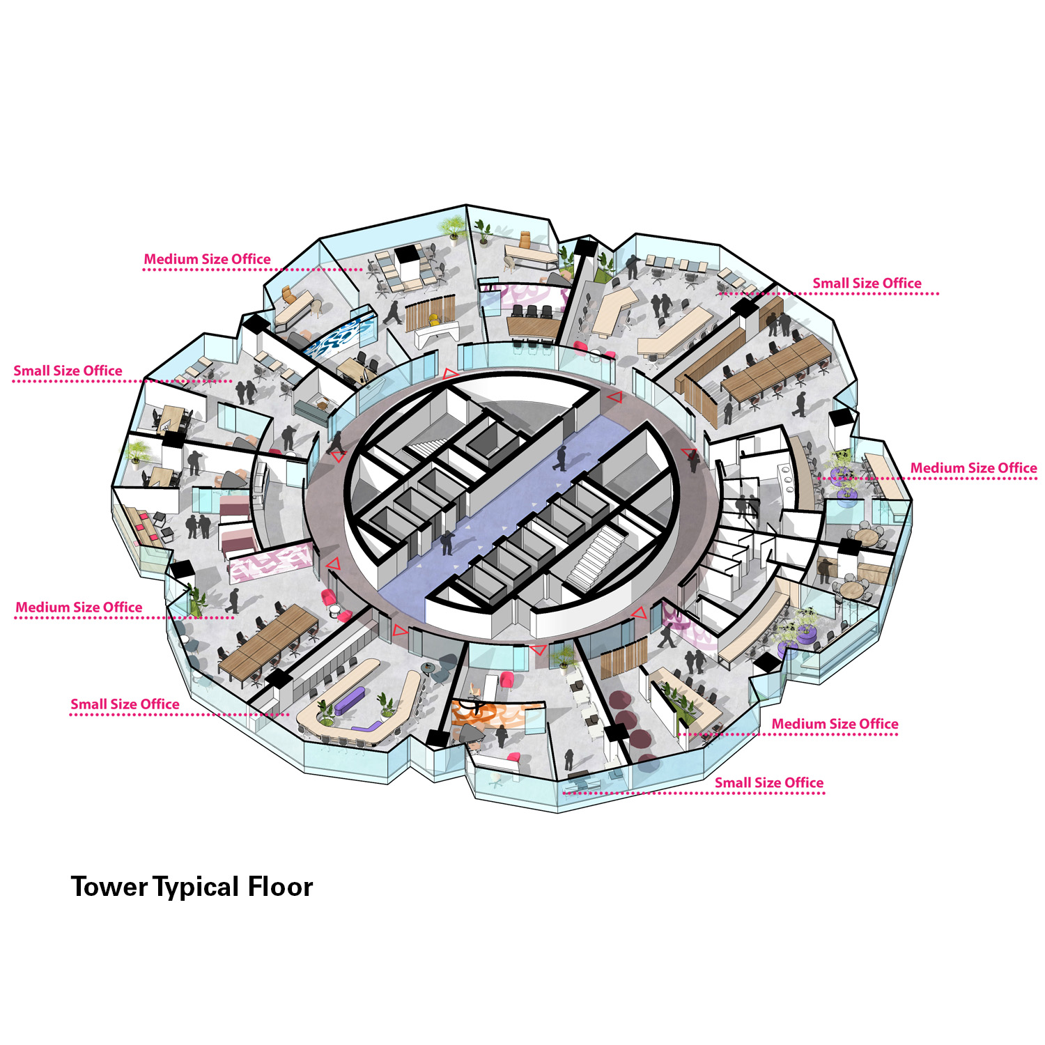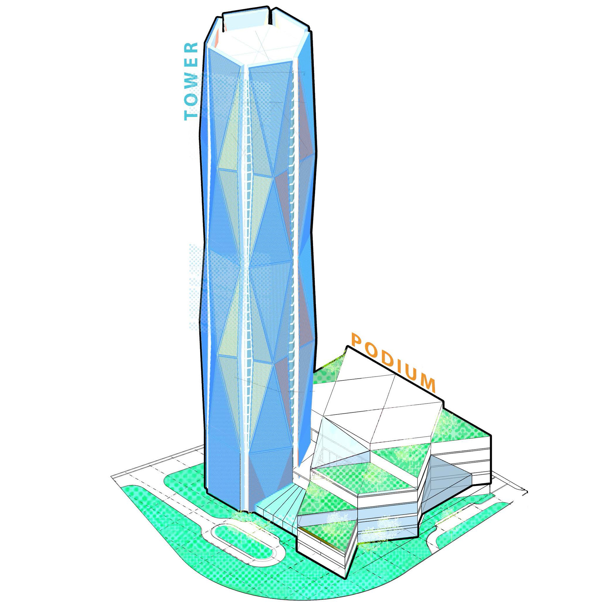 + Maximizing efficiency and flexibility of Podium and Tower planning layout to commodate the various required functions.