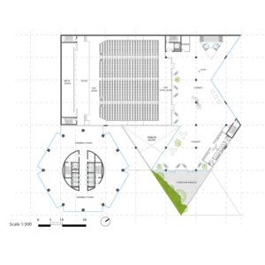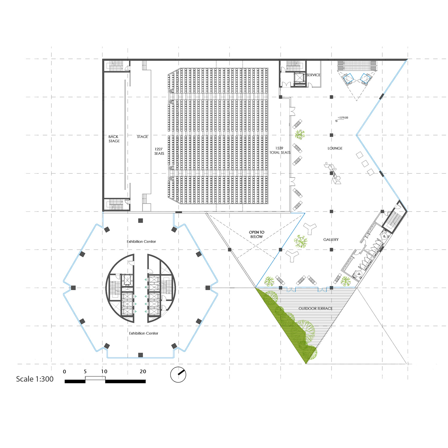Composition allows for progression of the program to cater to a diversified network of users and interact with intermediate lively outdoor spaces.