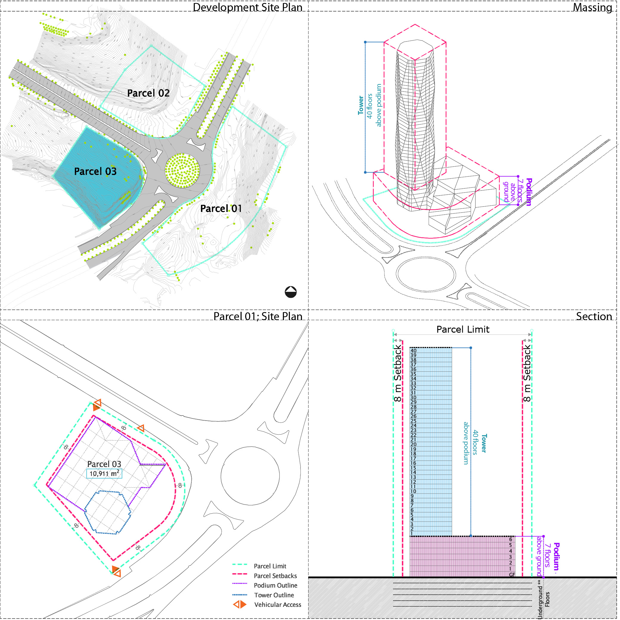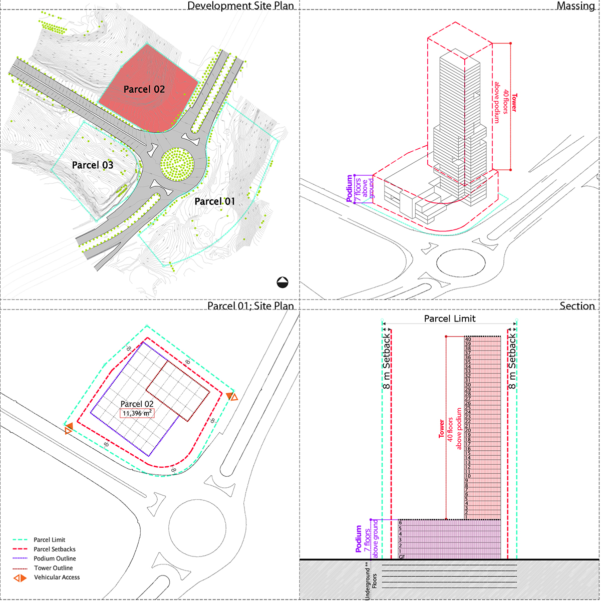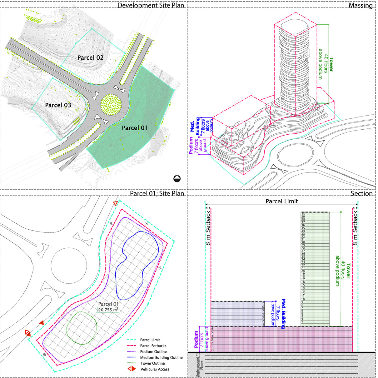 Parcel 01 development consists of Podium, Medium Building and Tower;